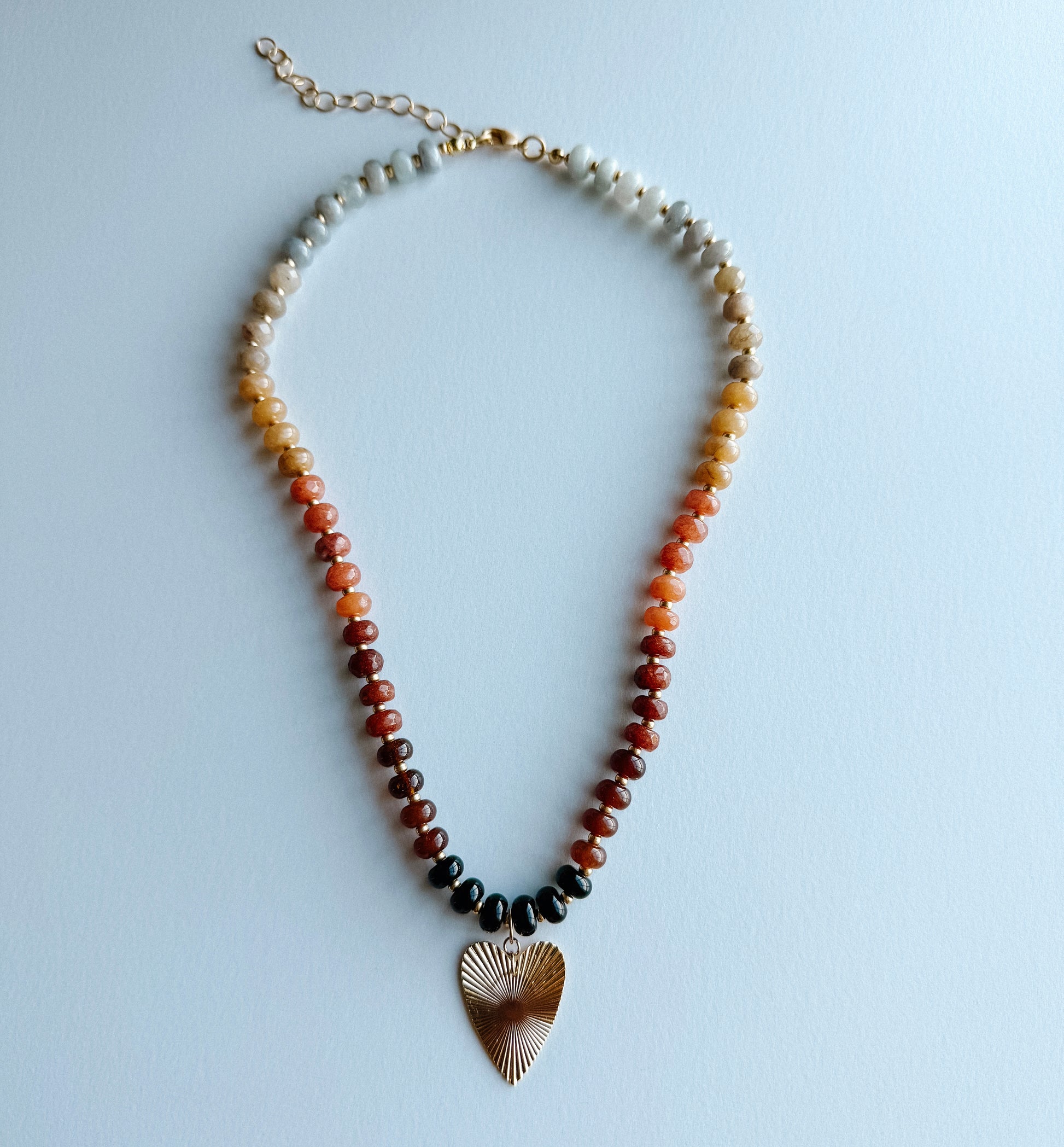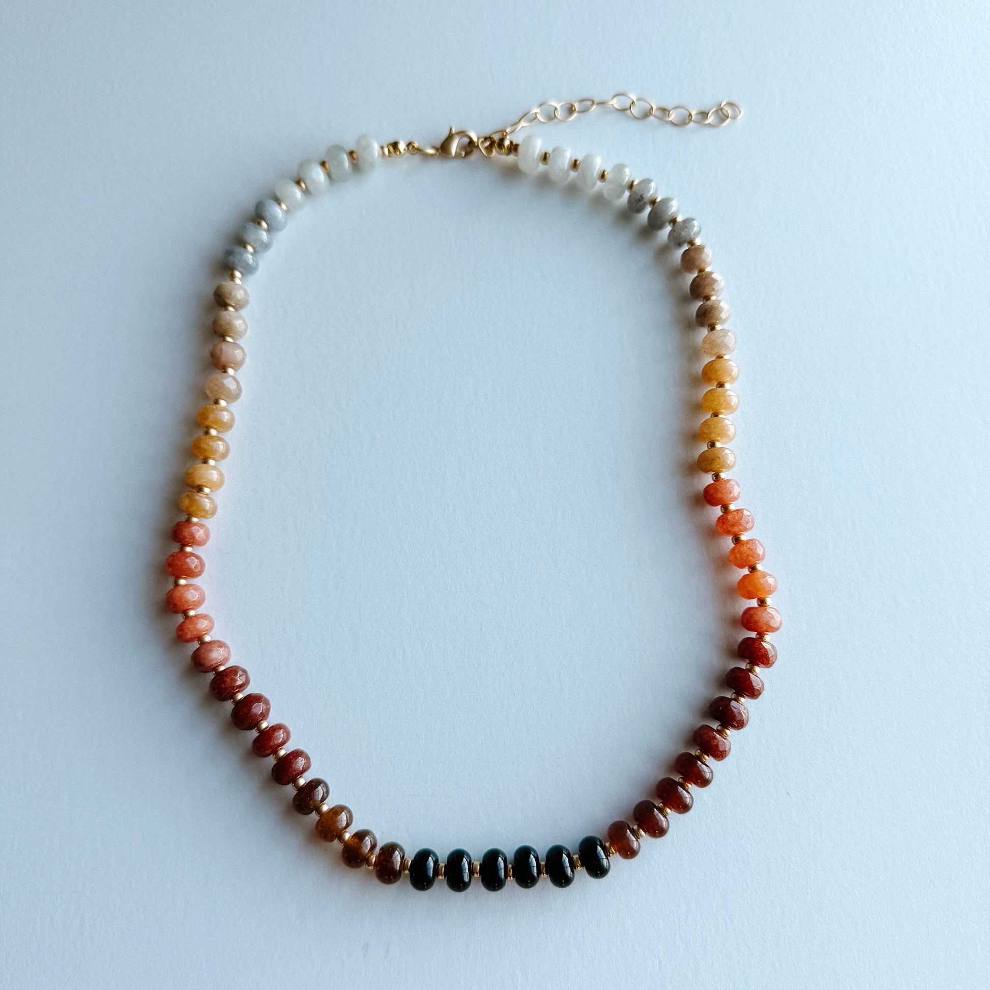 - 16” beaded necklace with 3” gold plated extender.